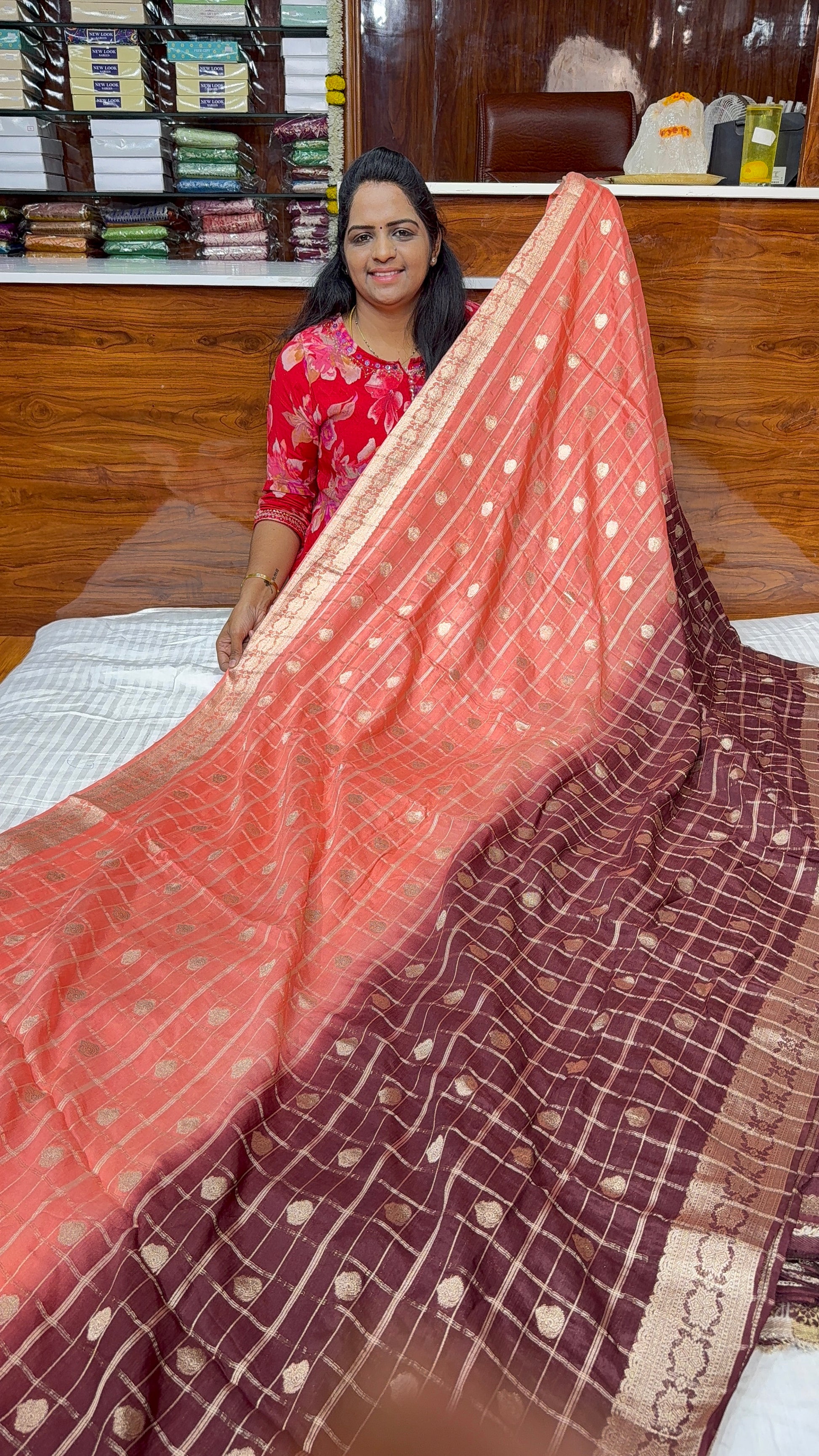 The VISCO GEORGETTE -SD18 is a saree crafted from high-quality Visco Georgette fabric, known for its lightweight and breathable properties. This fabric composition ensures comfort in various climates, while its fluid drape enhances elegance. Ideal for formal occasions, it combines aesthetic appeal with functionality.